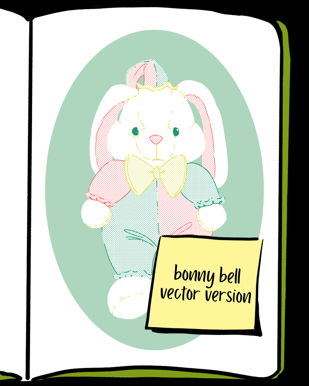 This drawing is a clown rabbit plush my late grandmother gave me when I was six or seven years old. Her name is Bonny Bell. My grandmother liked to name the plush toys she gave me. Bonny Bell had a twin named Billy Bob that was gifted to my brother. I’ve found myself illustrating a lot of things that my grandmother gave me.